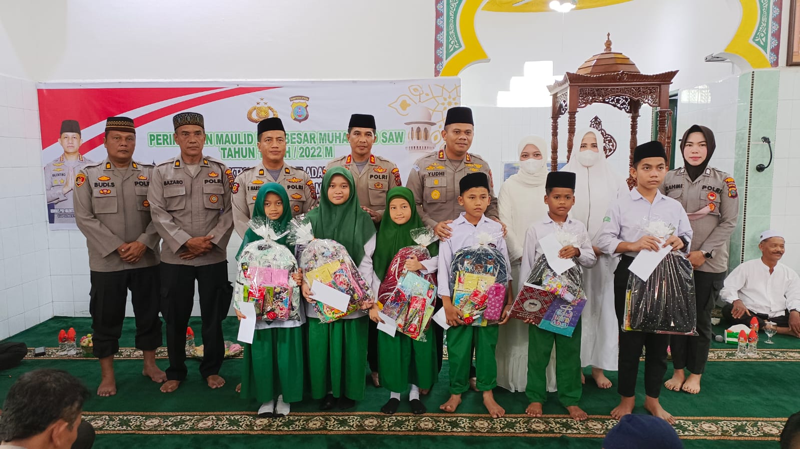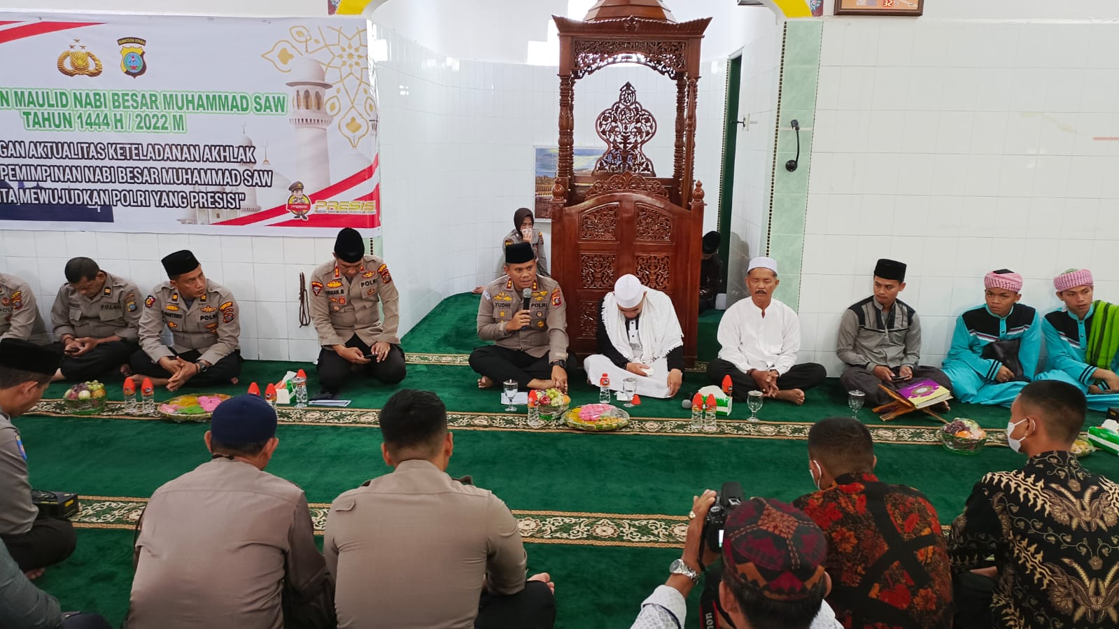 Polrestabes Medan menggelar kegiatan Maulid Nabi Muhammad SAW di Masjid Nurul Alfalah Jalan HM Said Medan bersama Anak Yatim, Kamis (13/10/2022).
