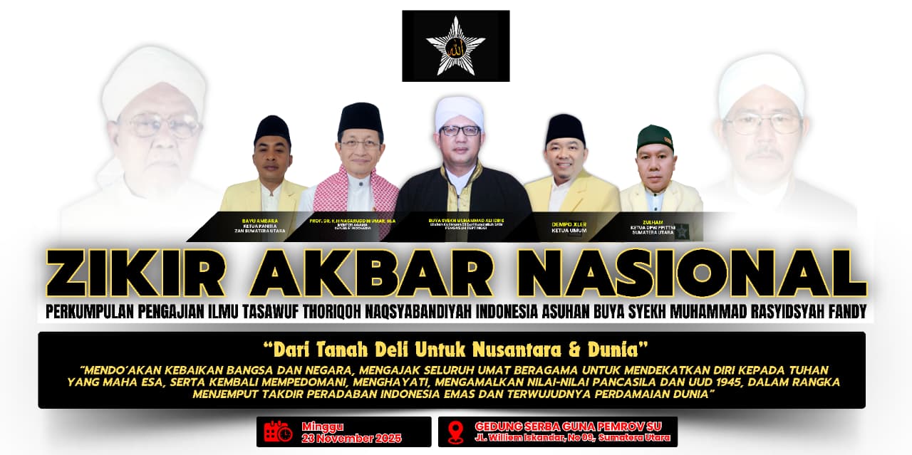 Agenda besar ini dijadwalkan berlangsung, Minggu (23/11/2025) sore, di Gedung Serbaguna (GSG) Pemerintah Provinsi Sumatera Utara, Jalan William Iskandar (Pancing), Deli Serdang. Ribuan jamaah dari berbagai Provinsi diperkirakan akan hadir, menjadikan Tanah Deli sebagai pusat gema zikir nasional jelang akhir tahun.